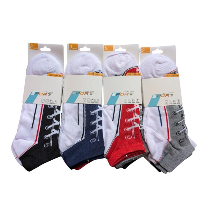 Socquette invisible pour homme, coton majoritaire. Chaussette avec motif graphique (voir photos) imprimé "chaussures de basket avec lacets". Taille unique 40 à 46.